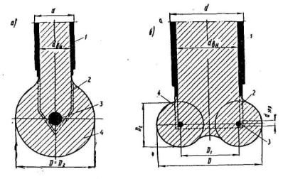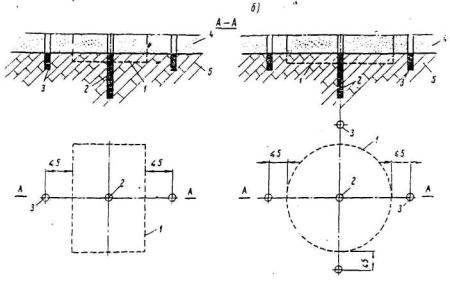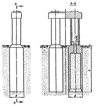 2.3. Для экономии материалов и снижения стоимости строительства фундаментов рекомендуется в основании оболочек устраивать камуфлетные или буровые уширения, которые следует располагать в слое грунта с расчетным сопротивлением в уровне подошвы уширения, как правило, не менее 10 кг/см2.