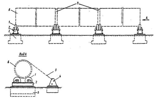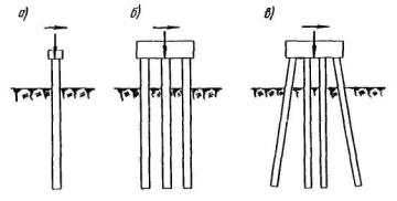 2.20. Опоры пешеходных мостов, путепроводов и эстакад следует проектировать из вертикальных или наклонных оболочек диаметром 0,4-0,8 м, заглубленных нижними концами в грунт и объединенных в верхней части насадкой или подферменной плитой (рис. 2).