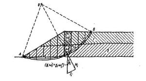 где - Муд и Мcдв - моменты удерживающих и сдвигающих сил. Очевидно, что для устойчивых откосов К>1, ибo Муд>Мсдв. В случаях когда К=1, грунты находятся в предельном равновесии. Для нормальных условии эксплуатации принято, чтобы К≥1,2. Если расчетные характеристики грунта (объемный вес γ, коэффициент трения f удельное сцепление с) определены для реального объекта специальными лабораторными исследованиями (а не взяты из справочников), можно допустить коэффициент устойчивости К≥1,1. Расчеты устойчивости обычно проводят для 1 пог. м длины насыпи.