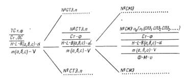 где Т - инженерно-геологический тип оползня; п - порядок оползня; б - базис смещения; ф - фаза развития современного оползневого цикла; S - стратиграфический индекс оползневых накоплений, отражающий историю развития оползневого склона; V-объем оползневого тела, м3; выражается через а • 10п; h - высота склона, на котором возник оползень, м; ас - крутизна поверхности склона, град, (генеральный угол); L - длина оползня, км; b - ширина оползня (в головной, средней, языковой частях соответственно), м; m - мощность оползневых накоплений (в головной, средней, языковой частях соответственно), м; fl - форма поверхности оползневого скольжения (обозначается начальной буквой названия поверхности соответствующей формы);