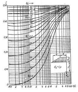 J - коэффициент влияния, определяемый по номограмме (рис.4), при a/z = 0, b/z = 0,5/z м