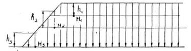 Рис. 5. Разбивка трапецеидальной нагрузки на составные части при определении прочности грунтов склонов и откосов: