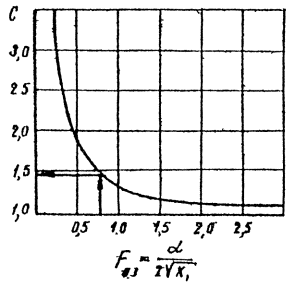 В случае, когда критическая глубина промерзания больше полной глубины промерзания за зимний период, весь порядок расчетов сохраняется таким же, как и в предыдущем случае, за исключением последнего этапа расчетов. Если в предыдущем случае расчет заканчивается определением времени промерзания τ2, необходимого для достижения критической глубины промерзания, то здесь, наоборот, необходимо с помощью тех же номограмм (рис. 6) найти глубину промерзания за время, равное уже полной продолжительности периода, промерзания (τпр).
