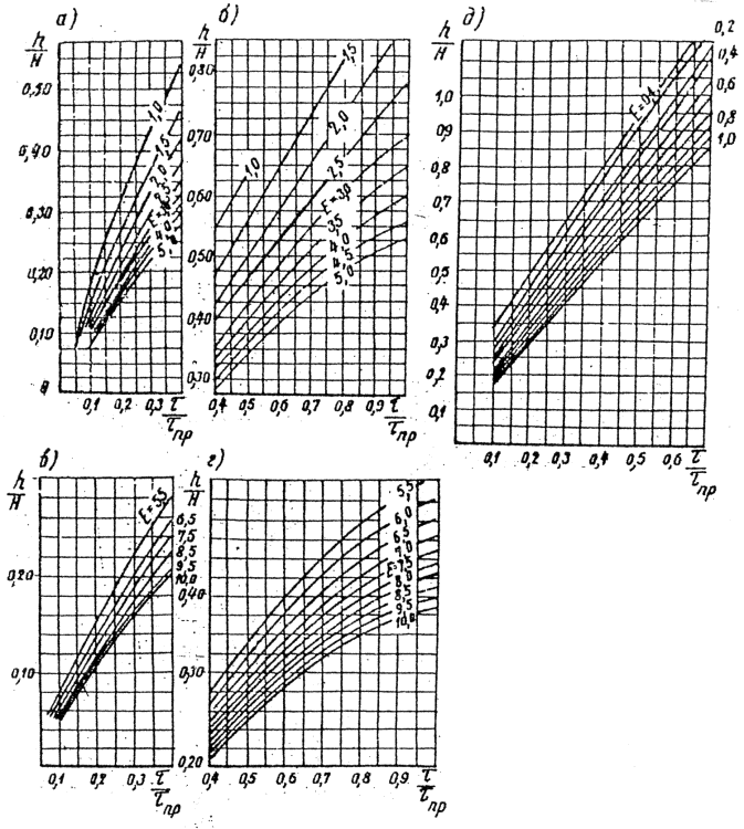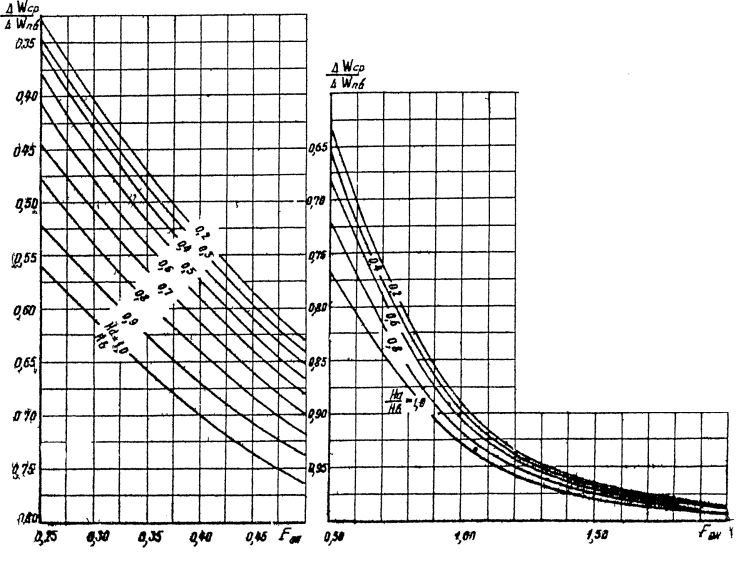 определяют по номограмме рис. 3 и 4 в зависимости от отношения Ha/Hв и критерия: