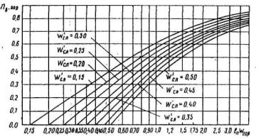 Примечание. tmах = 0,26 ч; qmах = 31,31°С. Расчет: вычисляется тепловая мощность нагревателя по формуле: Qэ = 0,86U2/Rэ = 0,86·902/56,2 = 123,8 ккал/ч. Функция В(у), определяемая по температурам q' и q, измеренным термометрами Т'э и Тэ в произвольные моменты времени t' и t, причем (t' < t0 < t), например по q' = 26,88°С при t' = 0,14 ч и q = 38,71 °С при t = 0,24 ч, вычисляется по формуле (43):