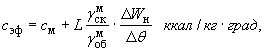Примечание. qкон по термометру Бекмана; 0,79. qкон по лабораторному термометру 17,55° С. Измеренные в опыте по термометру Бекмана начальную q0 и конечную qn, температуру главного периода опыты пересчитывают на °С, предварительно скорректировав конечную температуру на теплообмен калориметра с окружающей средой. Поправку на теплообмен D(Dq) вычисляют по формуле (4). В данном случае эта поправка равна -0,004° С и исправленная температура конца главного периода q'n = 0,77 - 0,004 = 0,766. Изменение температуры калориметрической жидкости с учетом поправки на теплообмен q0 -q'n =1000 -0,766 = 0,234 (по термометру Бекмана). Определяют разницу между показаниями лабораторного термометра и термометра Бекмана: d = 17,55 - 0,79 = 16,76. Находят значения начальной и конечной температуры главного периода опыта в °С: q0 °С = q0 + d = 1 + 16,76 = 17,76; qn °С = qn + d = 0,766 + 16,76 = 17,526; q0 - q'n = 17,76 - 17,526 = 0,234° С; q'n - qобр = 17,526 - (- 5) = 22,526° С. Удельную теплоемкость образца грунта определяют по формуле (33)