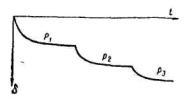 4.223. После достижения стабилизации деформации первой нагрузки (пункт 4.220) переходят к следующей ступени нагружения, которую также продолжают до стабилизации деформации. Опыт продолжают до той ступени нагружения, на которой деформация не стабилизируется, переходя в незатухающее деформирование с постоянной скоростью. Деформирование с постоянной скоростью считают достигнутым, когда не менее чем при четырех последующих отсчетах не наблюдают закономерного увеличения или уменьшения скорости деформирования. 4.224. Опыт прекращают, когда четко установлено незатухающее деформирование не менее чем при двух очередных ступенях нагрузки (рис. 30, пятая и шестая ступени). Каждую из этих нагрузок выдерживают в течение трех суток с тем, чтобы убедиться в незатухающем характере деформирования.