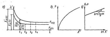 для произвольно выбранных моментов времени ti определяют значения 4.181. Для расчета параметра т по формуле (72) во время испытания при быстром приложении нагрузки (пп. 4.166, 4.167) измеряют осевые деформации образца грунта и динамометра. Для этого прибор оборудуют самописцем. По данным опыта строят график в координатах ¸ нагрузка Р - деформация образца грунта l" (рис. 24,б). Затем график этот представляют в логарифмических координатах (рис. 24, в). Угол наклона полученной прямой к оси абсцисс определяет величину a = arctgm. 4.182. Используя полученное значение параметра т, вычисляют предельно-длительное значение сопротивления данного мерзлого грунта одноосному сжатию sсж.дл по формуле (70). 4.183. Допускается