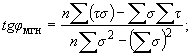 29. Диаграммы сдвига 4.208. Условно-мгновенные значения параметров смгн и jмгн данного вида грунта определяют графически по полученной диаграмме сдвига или путем расчета. Значение смгн определяют отрезком, отсекаемым на оси ординат диаграммой сдвига (см. рис. 29). Значение угла внутреннего трения jмгн определяют углом наклона диаграммы к оси абсцисс. Расчетным путем значения смгн и jмгн определяют со среднеквадратичным приближением - способом наименьших квадратов по формулам: