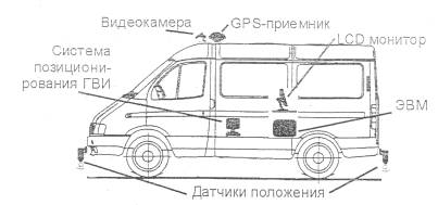 Рис. 2.7. Схема подвижной видеолаборатории. Обработка видеоматериалов осуществляется в камеральных условиях операторами на ПЭВМ. При обработке фиксируются имеющиеся на покрытии повреждения, их местоположение и степень развития разрушений (рис. 2.8).