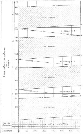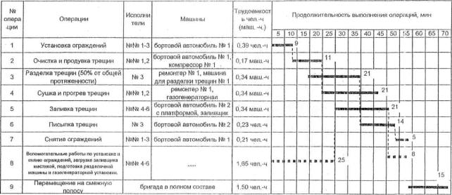 Рис. 4.20. Циклограмма операций по заделке трещин па магистралях.