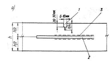 Производительность нарезчика увеличивается в 3 раза; затраты труда снижаются в 4-6 раз; фонд зарплаты уменьшается в 3-4 раза. Во всех случаях применения настоящей технологической карты необходима привязка ее к местным условиям производства работ. II. Указания по технологии производственного процессаНарезку швов в затвердевшем бетоне производят при достижении бетоном прочности 80-100 кг/см2 (6-30 ч после укладки бетона в зависимости от средней температуры твердения). Швы нарезают ступенчатого сечения (рис. 1). Расстояние между поперечными швами сжатия назначают в соответствии с требованиями