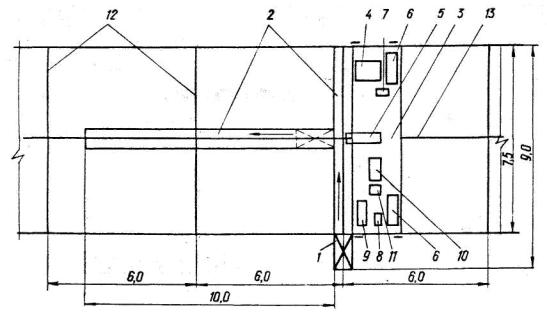 Примечание. Цифра над линией - продолжительность операции, мин Цифра под линией - длина участка, м ↓ - рекомендуемое время обеденного перерыва