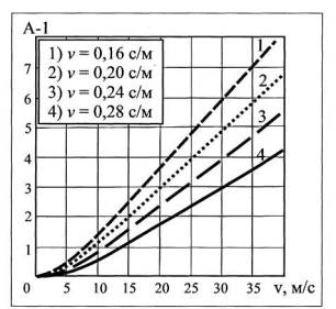 Рис. 1 Зависимость множителя А-1 от скорости ветра