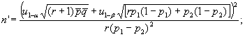 Сравнение двух пропорций для двустороннего критерия Н0: р1