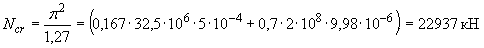 Рабочая арматура диаметром 25 мм, установленная по периметру колец Æ159 мм имеет радиус до центров rs = 0,5(159 + 25 + 2) = 93 мм = 0,093 м, где 2 мм - величина выступов на арматуре со стороны колец, отодвигающих продольную арматуру от продольной оси сваи. Моменты инерции арматуры Is, размещенной по окружности с радиуса rs до центра тяжести стержней Is = 998,15 см4 = 9,98·106 м4. Момент инерции поперечного сечения сваи I = 5·10-4 м4.