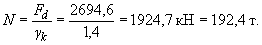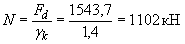 здесь 1,8 = kush по табл. 2. NR = gсR · Rrit · Аrit = 1,3 · 7680 · 0,26 = 2595,8 кН. Общая несущая способность сваи РИТ по грунту Fd = 0,7·1,0·(2595,8 + 603,2) = 2239,3 кН. Допускаемая нагрузка на сваю по грунту