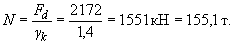 2.2. Суммарная несущая способность грунта Fd = gккgс,rit (gсRRritАrit + gcf Suiritfihi) = 0,85·1,0·(848 + 695,7) = 1543,7 кН = 154,3 т. 2.3. Проектная расчетная нагрузка на сваю-РИТ по грунту