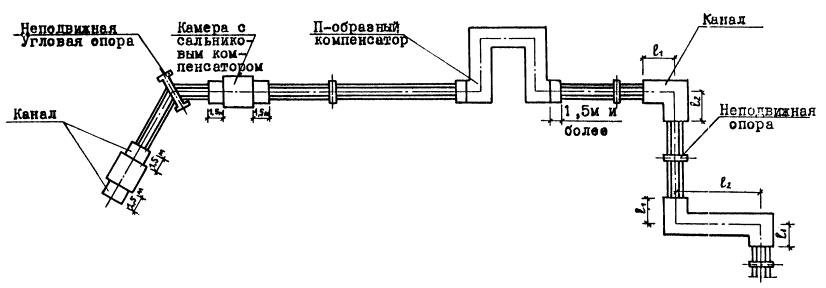 ПРИМЕЧАНИЕ: l1 и l2 - длины канальных участков при Г-образных и Z - образных поворотах трубопровода.