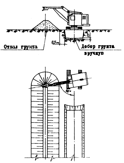 ЗЕМЛЯНЫЕ РАБОТЫУКАЗАНИЯ ПО ПРОИЗВОДСТВУ РАБОТ В технологической карте рытье траншей предусматривается одноковшовым экскаватором, оборудованным обратной лопатой, с совмещением оси экскаватора с осью траншеи. До начала разработки траншей выполняется разбивка её оси и бровок, границ отвала грунта и подготавливается место для его складирования. Вдоль трассы траншеи на расстоянии не более 40 - 50 м и на переломах устанавливаются в 0,5 м от верхнем бровки траншеи неподвижные визирки с рабочими отметками глубины разработки. Грунт разрабатывается экскаватором ниже уровня его стоянки продольной проходкой. Для обеспечения минимальной продолжительности рабочего цикла экскавации следует совмещать поворот стрелы экскаватора с операциями по спуску ковша для его наполнения и подъема - для его разгрузки. Угол поворота экскаватора пря разгрузке должен быть не более 80°. Грунт выбрасывается на одну сторону, с которой возможен приток дождевых вод. В грунтах, насыщенных водой, рытье траншей начинается с пониженной стороны, а для сбора и удаления грунтовых вод в траншее выкапываются приямки. Разработка грунта ниже грунтовых вод производится с применением открытого механизированного водоотлива или искусственного понижения уровня грунтовых вод. При рытье траншей экскаватором грунт не добирается до проектной отметки на 10 см. Последующий добор грунта выполняется вручную с выбрасыванием грунта на бровку (при глубине траншеи до 1,5 м) или с погрузкой в бадьи и подъемом на поверхность с помощью крана (при глубине траншей более 1,5 м). Грунт, выброшенный из траншей, следует размещать на расстоянии 0,5 м от бровки. При необходимости вслед за экскаватором на расстоянии не менее 10,0 м можно производить работы по креплению стен траншей. Крутизна откосов траншей, разрабатываемых без креплений, принимается по таблице (см. лист 12). При глубине траншей и котлованов свыше 5 м крутизна откосов устанавливается по расчету. Крутизну откосов траншей в глинистых грунтах, переувлажненных снеговыми, дождевыми и др. водами, следует уменьшать против указанной в таблице до 1:1 (45°), о чем производитель работ обязан составить акт. Разработка траншеи должна выполняться строго по проекту без перебора грунта и нарушения его естественной структуры. В случае перебора грунта, подсыпку и выравнивание дна траншеи следует производить песком. По дну траншеи, предназначенной для бесканальной прокладки тепловых сетей, должна устраиваться песчаная подушка толщиной не менее 100 - 150 мм. В насыпных, торфянистых и других слабых грунтах песчаная подушка должна укладываться на слой трамбованного щебня, гравия или тощего бетона толщиной не менее 100 мм. Тип основания под песчаную подушку устанавливается проектом в зависимости от характеристики грунта и местных условий,
