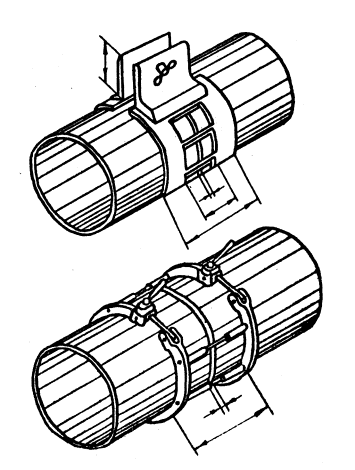 1 - винтовая ось; 2 - разжимающие башмаки; 3 - муфта; 4 - выправляемая труба; 5 - вмятины. После подготовки концов труб к сварке, трубы следует собрать, т.е. обеспечить соосность труб /совпадение свариваемых кромок/, а также необходимый равномерный зазор между свариваемыми трубами. Трубы, изготовленные с продольным сварным швом, должны собираться со смещением продольных швов каждой трубы по отношению к шву смежной трубы не менее чем на 100 мм. Сборку труб необходимо производить с помощью винтовых, рычажных эксцентриковых и цепных центраторов. Трубы считаются правильно сцентрированными, если величина смещений кромок и величина зазора между кромками не превышают величин, указанных в таблицах /СНиП III-Г.6-62/.