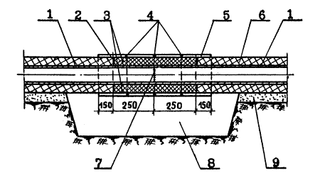 1 - труба теплосети 2 - заливка горячим битумом БН-1У 3 - битумоперлитовая скорлупа; 4 - скрутка из обожженной проволоки; 5 - 2 слоя гидроизоляции /бризол или стеклоткань/ по горячей мастике; 6 - битумоперлитовая изоляция трубопровода /заводская/; 7 - сварной стык; 8 - приямок; 9 - песчаная подушка БИТУМОПЕРЛИТОВЫЕ СКОРЛУПЫ ЗАВОДСКОГО ИЗГОТОВЛЕНИЯ, ПОСТАВЛЯЕМЫЕ ВМЕСТЕ С ТРУБАМИ.