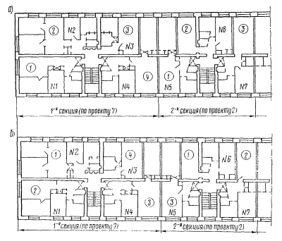 I - IV - очередность отделки квартир; 1, 2 - последовательность подготовки и масляной окраски полов