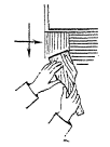 Последовательность окраски труб приспособлением: на шкурку кистью наносится слой краски, после чего полотнище шкурки заводится между стеной и тыльной стороной стояка. Прижимая полотнище к трубе, движением снизу - вверх маляр производит окраску |