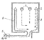 Рис. 50 1 - пневмовалик; 2 - направление окраски; 3 - шланг для подачи окрасочного состава; 4 - нагнетательный бачок С-383 или C-411; 5 - шланг для подачи воздуха |