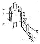 Рис. 45 1 - рукоять, 2 - труба, 3 - неподвижная труба, 4 - подвижная обойма, 5 - зажимной винт |