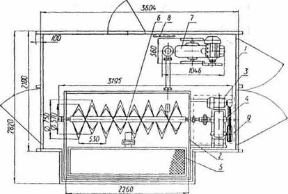 I. ОБЛАСТЬ ПРИМЕНЕНИЯТехнологическая карта разработана на основе применения методов научной организации труда и предназначена для использования при разработке проекта производства работ и организации работ и труда на объекте. Карта составлена на штукатурные работы по 70-квартирному дому серии I-447C-37 и может быть использована при выполнении штукатурных работ в жилых кирпичных домах других серий. В технологическую карту включены работы: подготовка поверхностей под оштукатуривание, улучшенная штукатурка стен из кирпича механизированным способом, штукатурка оконных, дверных откосов, заделка швов с прорезкой рустов между плитами перекрытий, конопатка и оштукатуривание мест примыканий гипсобетонных перегородок, выравнивание раствором шлакобетонных перегородок санузлов, промазка плинтусов и наличников, установка вентиляционных решеток, устройство наружных отливов, подача раствора к рабочему месту при помощи растворонасоса. II. УКАЗАНИЯ ПО ТЕХНОЛОГИИ ПРОИЗВОДСТВА РАБОТ1. Штукатурные работы следует выполнять после окончания кирпичной кладки, монтажа плит перекрытия, кровельных и стекольных работ. 2. Перед началом работ необходимо тщательно осмотреть и принять по акту комиссии прочность крепления сборных перегородок, наличие в каналах скрытой электропроводки, горизонтальность и вертикальность поверхностей основных конструктивных элементов, качество конопатки швов, наличие предусмотренных проектом ниш, борозд, крепежных деталей для сантехприборов и остеклить переплеты. 2. Штукатурный раствор приготавливают централизованно на растворном узле и доставляют на объект по часовому графику. Для перемешивания и подачи раствора на этажи здания применяют штукатурный агрегат конструкции Демьяненко (рис. 1).