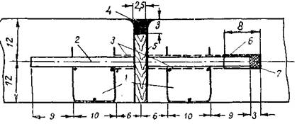 Звено работает на двух захватках: захватке 3 по установке арматурных каркасов и захватке 6 по заполнению швов мастикой.