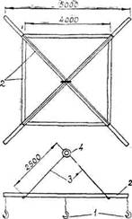 В начале смены (в течение 4 ч) дорожные рабочие, зацепив каркас на крюки траверсы, прямо с автомобиля подают каркас на место установки, удерживая его баграми от раскачивания; после установки каркаса в плане устанавливают в проектное положение подкладки. Один из них руководит работой машиниста крана.