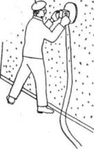 конуса в пределах 10- Накрывочный слой затирают затирочными машинками СО-55. В процессе затирки поверхность смачивают водой по мере надобности. Места, недоступные для механизированной затирки, обрабатывают терками. 2. Облицовка стен глазурованной плиткой Работы по облицовке начинают с помещений, где закончена штукатурка стен. Звеньевой облицовщик-плиточник 4 разр. размечает, провешивает поверхности, укладывает на отметке чистого пола при помощи уровня деревянные рейки, выше уровня облицовки и ниже уровня пола забивает стальные штыри и по ним натягивает шнур, а по шнурам устанавливает в одной плоскости с первым рядом четыре маячных плитки на растворе. Затем он с облицовщиком 3 разр. устанавливает рядовые плитки. Перед установкой плитки увлажняют. Для соблюдения заданной толщины шва между плитками устанавливают инвентарные скобы (скоба Скребцова), вертикальность облицованной поверхности проверяют правилом. После окончания рядовой облицовки облицовщик 4 разр. устанавливает карнизные плитки, облицовщик 3 разр. прирезает, сверлит и сортирует плитки на следующий участок стен. Облицовщик-плиточник 2 разр. из сухой смеси приготовляет в растворомешалке УМ-80 раствор и доставляет его на место облицовки, затем подготовляет поверхности (наносит борозды, смачивает), после окончания облицовки заполняет раствором швы между плитками и очищает поверхности от излишков раствора. Приемы труда1. Механизированное нанесение обрызга и грунта Штукатур, придерживая двумя руками шланг, направляет факел раствора под углом 60-70°, к поверхности стен. Движениями форсунки сверху вниз он наносит ровным слоем раствор на обрабатываемую поверхность, перемещаясь при этом по принятому в схеме направлению соплования. Пользуясь дистанционным управлением растворонасоса, сопловщик при надобности включает и выключает растворонасос. Второй штукатур помогает переносить шланги. 2. Разравнивание слоев намета и нанесение на стену отскоков раствора Штукатур, приставив полутерок к слою намета так, чтобы передняя кромка полутерка была поднята на 20-30°, зигзагообразными движениями снизу вверх и в горизонтальном направлении выравнивают поверхность. Отскоки раствора кельмами наносят на стену, после чего повторно выравнивают поверхности. Одновременно с выравниванием поверхностей натирают лузги с проверкой качества выполненного грунта.