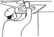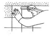 6. Облицовка поверхности стен глазурованной плиткой Облицовщик перед нанесением раствора на очередную плитку тыльной стороной ее проводит по раствору для увлажнения. Затем он наносит раствор плиточной лопаткой на тыльную сторону плитки равномерным слоем, который должен быть такой толщины, чтобы при осаживании плитки он немного выступал сверху и сбоку.
