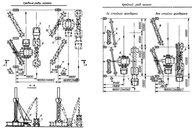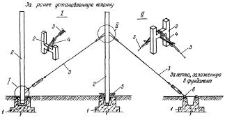 Схемы временного крепления расчалками колонн длиной более 12 м