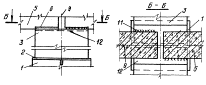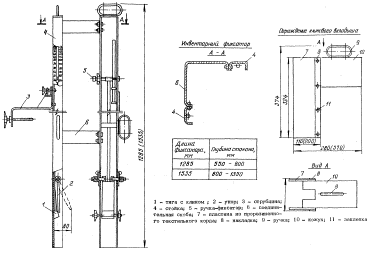 Техника безопасности при производстве работ При выверке и временном креплении колонны в стакане с помощью инвентарных клиновых вкладышей предварительно следует проверить пригодность их к работе. Запрещается использовать клиновые вкладыши с поврежденными деталями. Для вращения винта клинового вкладыша следует применять специальный ключ. Удлинение рукоятки ключа не допускается. Расстроповку установленных колонн следует производить только после их закрепления в стакане фундамента клиновыми вкладышами, а колонн высотой более 12 м - дополнительно и расчалками. Монтажные приспособления Армобетонные подкладки используют при выверке колонн, установленных в стаканы фундаментов. Применение таких подкладок исключает необходимость устройства выравнивающего слои из бетонной или растворной смеси, упрощает выведение опорных площадок (верха колонны, консолей, подкрановых балок) на проектную отметку, облегчает выверку колонны по вертикали. Подкладки размерами 100×100 мм, толщиной 20 и 30 мм из раствора марки 200 армируют сеткой с ячейками 10×10 мм из стальной проволоки диаметром 1 мм. Пакет из армобетонных подкладок укладывают на дно стакана. Инвентарный фиксатор предназначен для обеспечения проектного положения низа колонны в плане и фиксации ее при дальнейшей выверке по вертикали. Фиксатор состоит из стойки со шкалой-указателем, тяги с клином, упора, ручки-фиксатора, струбцины, съемной приставки и соединительной скобы. Тягу с клином устанавливают и фиксируют на высоте, соответствующей требуемому положению упора, которое контролируется расположением ручки-фиксатора на шкале стойки. После этого фиксатор подвигают вплотную к стенке на дне стакана фундамента и крепят струбциной. Цифра на шкале, против которой находится ручка-фиксатор, показывает расстояние между стенкой стакана и концом упора. Оно должно соответствовать требуемому зазору между гранью колонны и стенкой стакана. При зазорах менее 80 мм съемная приставка снимается. Для удобства работы стойки фиксаторов скреплены попарно соединительными скобами. При установке колонны в стакан ее торец скользит по упору. После закрепления колонны вкладышами ручку-фиксатор ослабляют, тягу опускают, ослабляют винт струбцины и фиксатор извлекают из стакана. Инвентарный клиновой вкладыш состоит из корпуса с гайкой и ручкой, винта с бобышкой и клина, подвешенного на шарнире. Клиновые вкладыши устанавливают в зазоры между гранями колонны и стенками стакана фундамента. При зазорах более 90 мм применяются дополнительные приставки. Работает клиновой вкладыш следующим образом. При вращении винта ключом под действием бобышки клин перемещается в корпусе на шарнире. В результате создается усилие распора между клином и корпусом. Прежде чем заделать стык между колонной и фундаментом бетонной смесью на клиновой вкладыш устанавливают ограждение, которое извлекают из стакана сразу же после уплотнения смеси (при жестких бетонных смесях) или после начала схватывания. После набора бетоном замоноличивания 70 % проектной прочности клиновой вкладыш вынимают за ручку, предварительно сняв распор вращением винта.