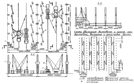 Выгрузка и предварительная раскладка колонн в зданиях пролетами 6, 9 и 12 м