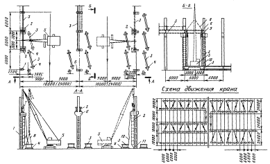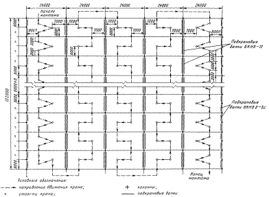 Схема движения крана при монтаже подкрановых балок