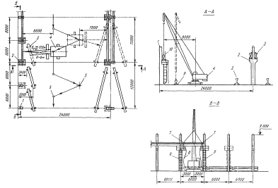 ГОССТРОЙ СССР ЦЕНТРАЛЬНЫЙ НАУЧНО-ИССЛЕДОВАТЕЛЬСКИЙ И ПРОЕКТНО-ЭКСПЕРИМЕНТАЛЬНЫЙ ИНСТИТУТ ОРГАНИЗАЦИИ, МЕХАНИЗАЦИИ И ТЕХНИЧЕСКОЙ ПОМОЩИ СТРОИТЕЛЬСТВУ (ЦНИИОМТП) ТЕХНОЛОГИЧЕСКИЕ СХЕМЫ ВОЗВЕДЕНИЯ ОДНОЭТАЖНЫХ ПРОМЫШЛЕННЫХ ЗДАНИЙ ВЫПУСК II МОНТАЖ НАДЗЕМНОЙ ЧАСТИ Под общей редакцией к.т.н. Гребенника Р.А. и к.т.н. Мачабели Ш.Л. МОСКВА-1985 Содержание Рекомендовано к изданию решением Научно-технического совета ЦНИИОМТП Госстроя СССР. Технологические схемы возведения одноэтажных промышленных зданий. Выпуск II. Монтаж надземной части. М., 1985, 160 с. (Госстрой СССР. Центр. науч.-исслед. и проектно-эксперим. ин-т организации, механизации и техн. помощи стр-ву. ЦНИИОМТП). Приведены описания, схемы и технико-экономические показатели монтажа конструкций одноэтажных промышленных зданий. Представлен также состав унифицированной нормативно-технологической документации по комплектации объектов строительства материальными ресурсами. В приложениях даны рекомендуемые технологическая оснастка, оборудование для монтажа и транспортные средства для перевозки конструкций. Работа предназначена для научно-исследовательских институтов, учебных и строительных организаций. ВВЕДЕНИЕВ работе освещены вопросы возведения одноэтажных промышленных зданий унифицированных габаритных схем со сборными железобетонными каркасами из типовых строительных конструкций и стальными конструктивными элементами. Второй выпуск содержит технологические схемы на монтаж конструкций надземной части зданий. Приведена прогрессивная технология устройства основных конструктивных частей зданий, комплекты механизмов, транспортных средств и вспомогательных устройств, применяемых при возведении одноэтажных промышленных зданий, даны показатели затрат труда рабочих и времени работы механизмов. Наряду с технологией, основанной на применении существующего оборудования, показаны перспективные схемы применения новых механизмов и приспособлений. Комплексное внедрение прогрессивных организационно-технологических решений, рекомендуемых в настоящей работе, позволит, по предварительным расчетам, уменьшить: на 5-10 % сроки строительства, на 10-15 % затраты труда (по рассматриваемым конструктивным частям зданий), на 0,4-2,0 руб. стоимость строительно-монтажных работ в расчете на 1 м2 производственной площади. В разработке технологических схем монтажа надземной части принимали участие сотрудники ЦНИИОМТП Е.Е. Блинков, [Н.А. Болобан], А.В. Величенков, В.Г. Виноградова, Р.А. Гребенник, В.П. Зайцев, Ш.Л. Мачабели, С.Ц. Мкртчан, [В.А. Слесарев], О.В. Слободкина, И.Я. Стронгин, И.И. Шаров, И.Я. Шемонаев. Рекомендации по геодезическому обеспечению производства монтажных работ подготовлены С.В. Климановым, А.Б. Илюшиным и В.С. Сытником. Подбор транспортных средств для перевозки типовых сборных железобетонных конструкций выполнен М.И. Гриффом, Д.М. Златопольским и В.Ф. Трофименковым. Вопросы производственно-технологической комплектации конструкций изделий и материалов освещены А.М. Безрученко и И.А. Мякишевой, вопросы техники безопасности В.А. Алексеевым. В настоящем выпуске монтаж типовых сборных железобетонных конструкций надземной части одноэтажных промышленных зданий показан на примере массового использования унифицированных габаритных схем; представлен также монтаж стальных подкрановых 