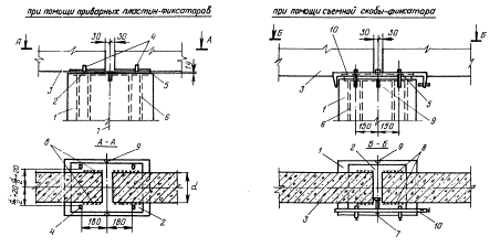 Схемы установки инвентарных фиксаторов и клиновых вкладышей