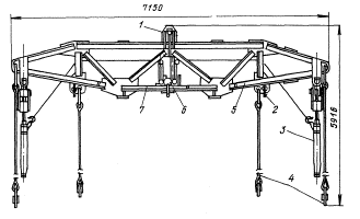 1 - палец; 2 - фиксатор; 3 - захват; 4 - строп; 5 - ферма; 6 - колесо; 7 - скоба Техническая характеристика