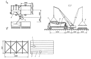 Примечание. В качестве приспособления для установки панелей перегородок используется траверса (п. 24 приложения), а для выгрузки и раскладки - краны (автомобильные) KG-I562A с двухветвевыми стропами (п. 1 приложения).