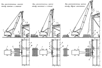 Схемы укладки элементов чердачного перекрытия при движении крана в поперечном направлении