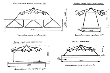 Схема строповки сборных железобетонных конструкций универсальной траверсой