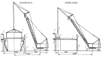 * Значения требуемого вылета крюка крана приведены для двух случаев: в числителе - для кранов с обычным стреловым оборудованием; в знаменателе - для кранов с башенно-стреловым оборудованием.