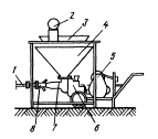 Доставленную в автомобиле-самосвале смесь выгружают в приемный бункер установки, и после перемешивания по направляющему лотку она поступает в пневмонагнетатель. Оттуда раствор по рукаву посредством сжатого воздуха подается в замоноличиваемый стык. Для предотвращения резких выхлопов раствора из рукава и снижения скорости его выхода на конце рукава устанавливается гаситель. Использовать установку рекомендуется при наличии достаточного фронта работ по замоноличиванию стыков или при наличии резерва работ по укладке бетонной смеси в фундаменты, стены подвалов, по устройству подготовки под полы и т.п. Замоноличивание стыков плит покрытия цементно-песчаным раствором Нагнетание раствора в стыки плит покрытия производится с помощью агрегата конструкции ЦНИИОМТП, состоящего из прямоугольного растворонасоса, вибросита и накопительной емкости объемом 0,8 м3, смонтированных на одной раме. Агрегат устанавливают на объекте в соответствии с возможной дальностью транспортирования растворной смеси по горизонтали до 30-40 м (подвижность смеси 7-9 см). Доставленная авторастворовозом смесь порционно выгружается в поворотный бункер объемом 0,5 м3, а затем в накопительную емкость агрегата. Из емкости через вибросито раствор поступает в приемный бункер и далее растворонасосом подается по рукаву диаметром 50 мм в стыки плит покрытия. Техническая характеристика прямоточного растворонасоса на базе растворонасоса СО-30 (С-684)