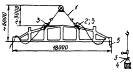 1 - вертикальные связи; 2 - фонарные фермы; 3 - оси стропильных ферм; 4 - фонарные панели; 5 - торцевые панели фонарей; 6 - ось температурного шва; 7 - монорельс; 8 - верх стропильной фермы Выгрузка и раскладка конструкций торцевого блока фонаря и укрупнительная сборка торцевой панели при монтаже плоскостными элементами