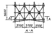 1 - плиты покрытия; 2 - балка покрытия; 3 - колонны; 4 - металлическая стойка; 5 - сварной шов; 6 - опорный столик; 7 - стеновая панель; 8 - анкер; 9 - болт; 10 - гайка МОНТАЖ СТАЛЬНЫХ СВЕТОАЭРАЦИОННЫХ ФОНАРЕЙСхемы разработаны для монтажа светоаэрационных фонарей одноэтажных промышленных зданий пролетами 18 и 24 м, высотой до низа стропильных ферм от 3 до 18 м. Конструкция фонарей предусматривает возможность подвески монорельсов, несущих специальные устройства для мойки стекол двухъярусных переплетов. Фонари приняты П-образные, с вертикальными переплетами. Они расположены вдоль здания по середине пролета. Покрытие фонарей типовое, из железобетонных плит размерами 3×6 и 3×12 м, с наружным водостоком. Основными элементами стальных конструкций фонаря являются фонарные панели и фермы, панели торцов фонарей, а также связи. Фонарные панели располагаются в плоскости остекленных переплетов фонаря, каждая из них опирается на две соседние стропильные фермы покрытия и в зависимости от их шага имеет длину 6 или 12 м. Фонарные фермы состоят из стоек и раскосов. Их располагают вдоль стропильной фермы. Панели торцов фонаря состоят из стоек, горизонтальных элементов и раскосов, они расположены в плоскости стропильных ферм. Связи предусмотрены: горизонтальные - по верху фонарей, вертикальные - между фонарными фермами в виде решетчатых ферм с параллельными поясами. Вертикальные связи доставляют на объект в готовом виде. Номинальные размеры фонарей и их переплетов в зависимости от пролетов зданий приведены ниже.