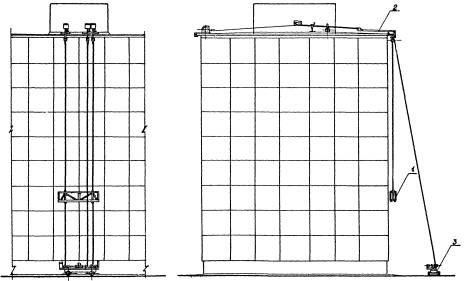 с двухместной люльки, навешиваемой на консольные балки, укрепляемые на крыше.